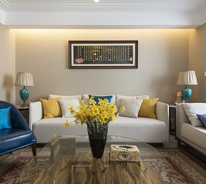 本案风格定位为新中式,把传统的中式元素加以简化和提炼,以现代人的审美打造古典韵味的事物