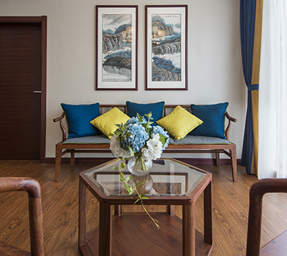 本案堪称一幅宁静娴雅的中式写意画卷。