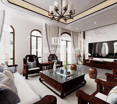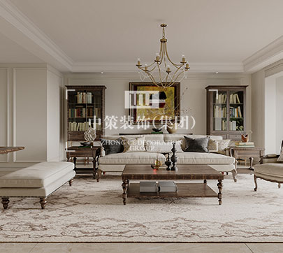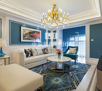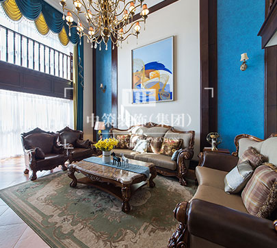 本案定位为美式风格,迷人之处在于家具造型、纹路、雕饰和色调细腻高贵,整个空间流淌着历史的痕迹以及艺术沉淀的芬芳。