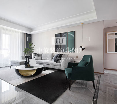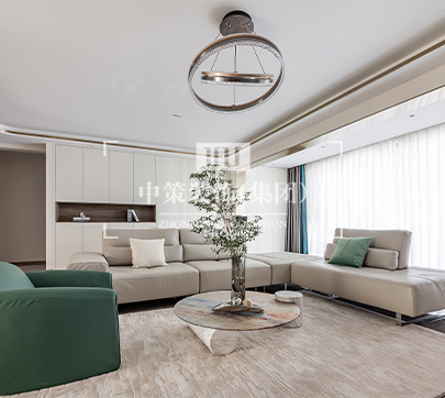 本案的现代风格与绿色相融合,展现着独特的优雅视感受。它让人联想到绿色森林的自然清新,是远离喧嚣的宁静,是低调淡然的空间气质。