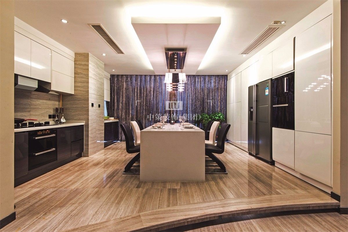 在空间的每个角落都融合了现代情调及装饰艺术的设计语言,既保存着现代的简约气韵和摩登的个人风格,又在摩登及优雅的空间中显得格外有亲和力。在空间划分上,充分利用墙体的转折、材料的变化和家具隔断的摆放,既将空间的功能进行了合理的划分,又保持了区域间的相互沟通,使空间层次感顿时显现。
