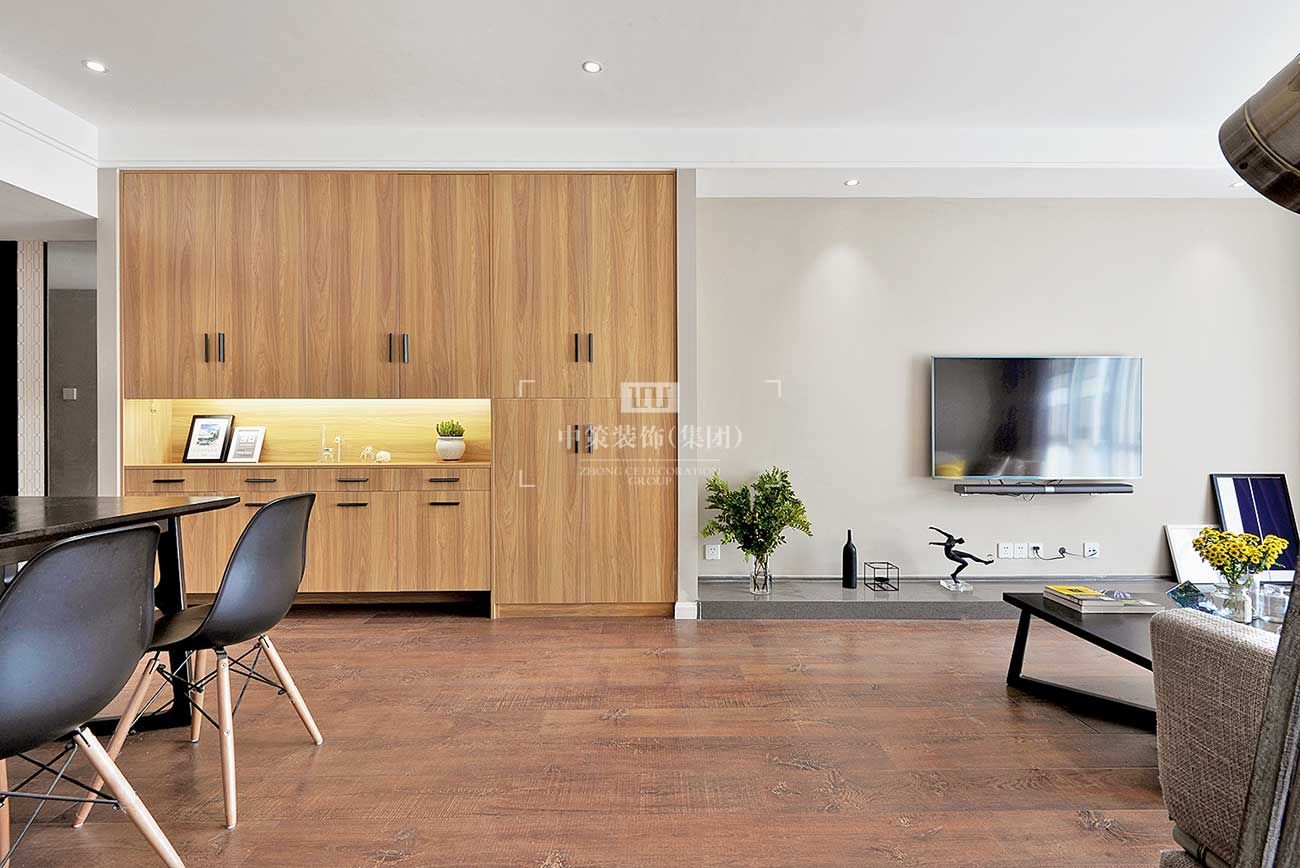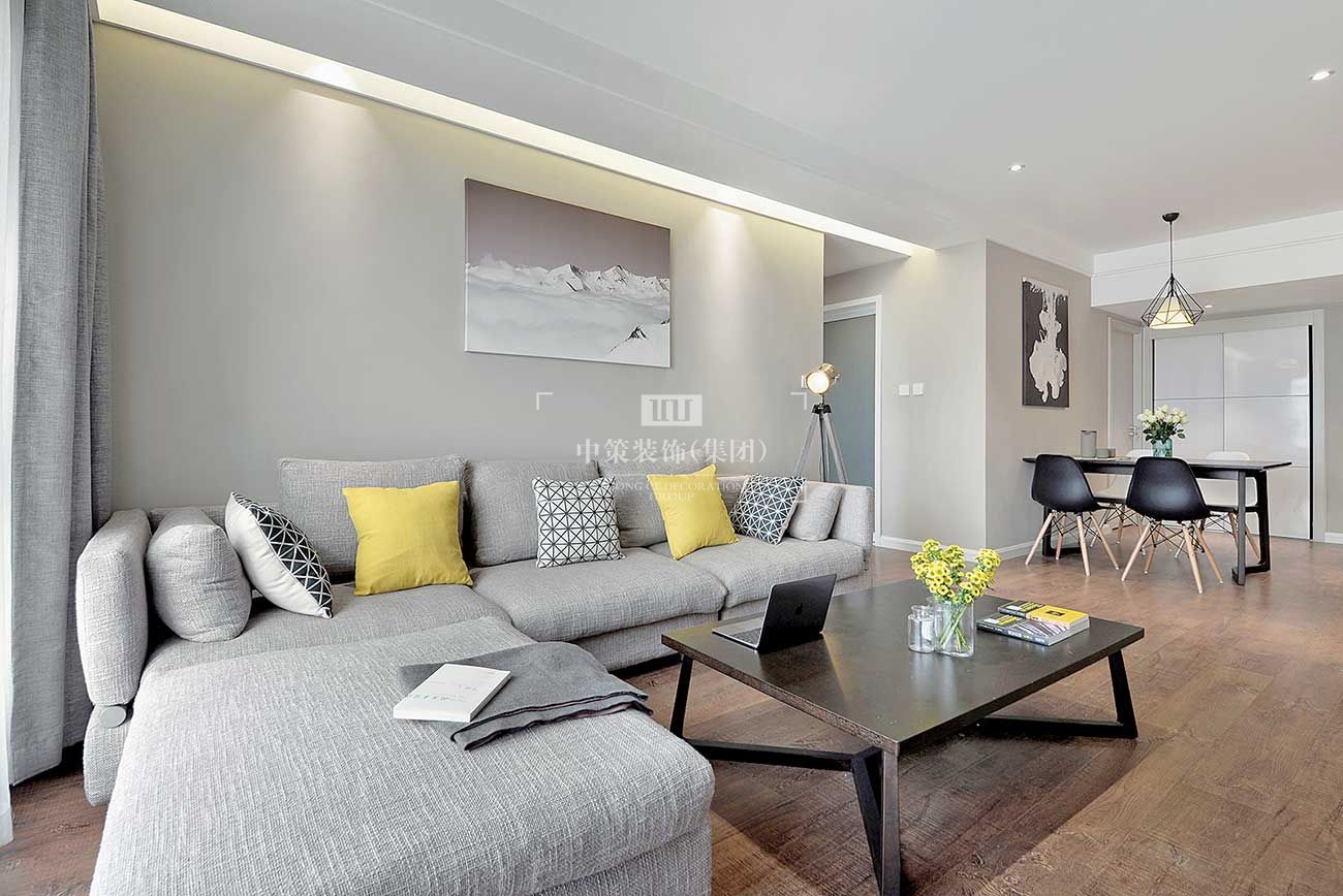 客厅设定为简约自然,没有纷繁复杂的装饰。优雅大方的灰色与原木色饰面,简简单单便能营造质感的空间;在家具的选择和氛围营造上,以彰显舒适大气的特质为主,呈现出生活中的自由热情、浪漫休闲。