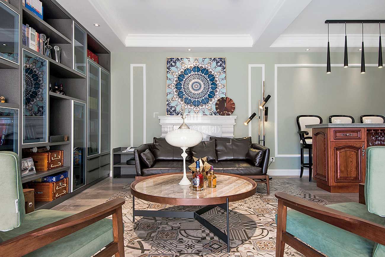 与极简主义的单一感和冷酷感迥然不同,设计师将多元的色彩和活跃的线条融入进来,透过丰富的空间表情,呈现出生活的多元情绪,营造都市中一家三口温馨愉悦的生活场景。缥蓝和褐色作为色彩中的主角,成为宁静与热情的糅合体,给人亲切温暖的感受。地毯和墙壁中融入了波普元素,使空间拥有饱满的视觉体验。