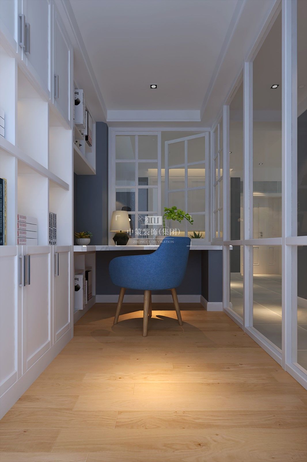 4、 书房说明:书房木质玻璃隔断的设计即保证了书房的独立性,同时又让书房空间不显的局促。