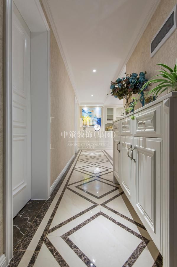 整体暖色墙面肌理感丰富,搭配宫廷品牌家具,整个环境氛围凝聚优雅气质,像是在海洋和天空中手捧一簇盛开的香槟玫瑰。配合深蓝色与暖黄色的靠垫,显眼的撞色对比,既强烈而又和谐,一柔一刚,更生动的体现出家具不一样的轮廓曲线,汇聚出动人风情。