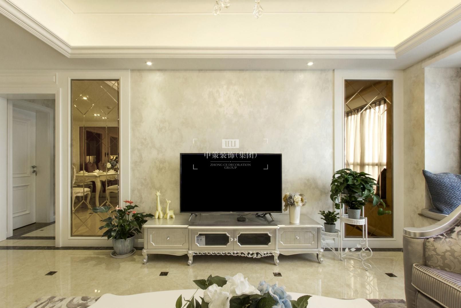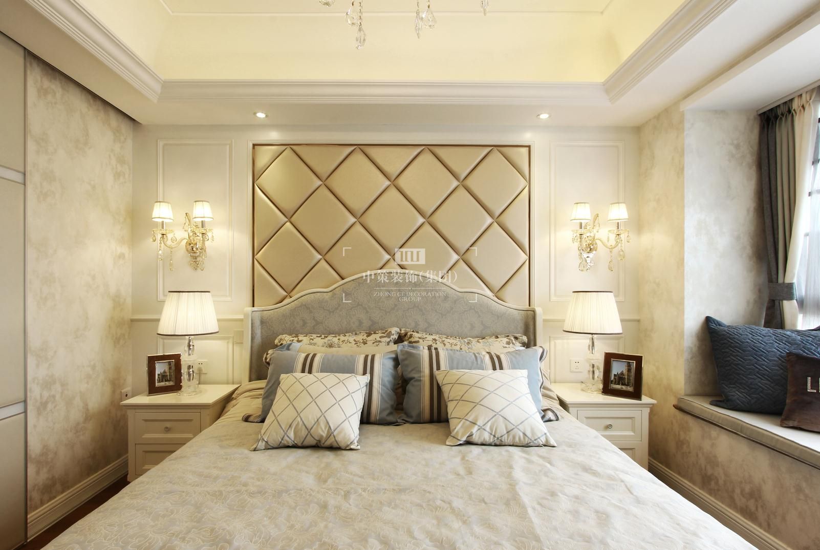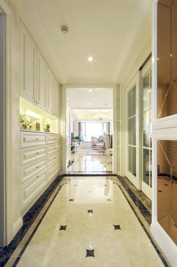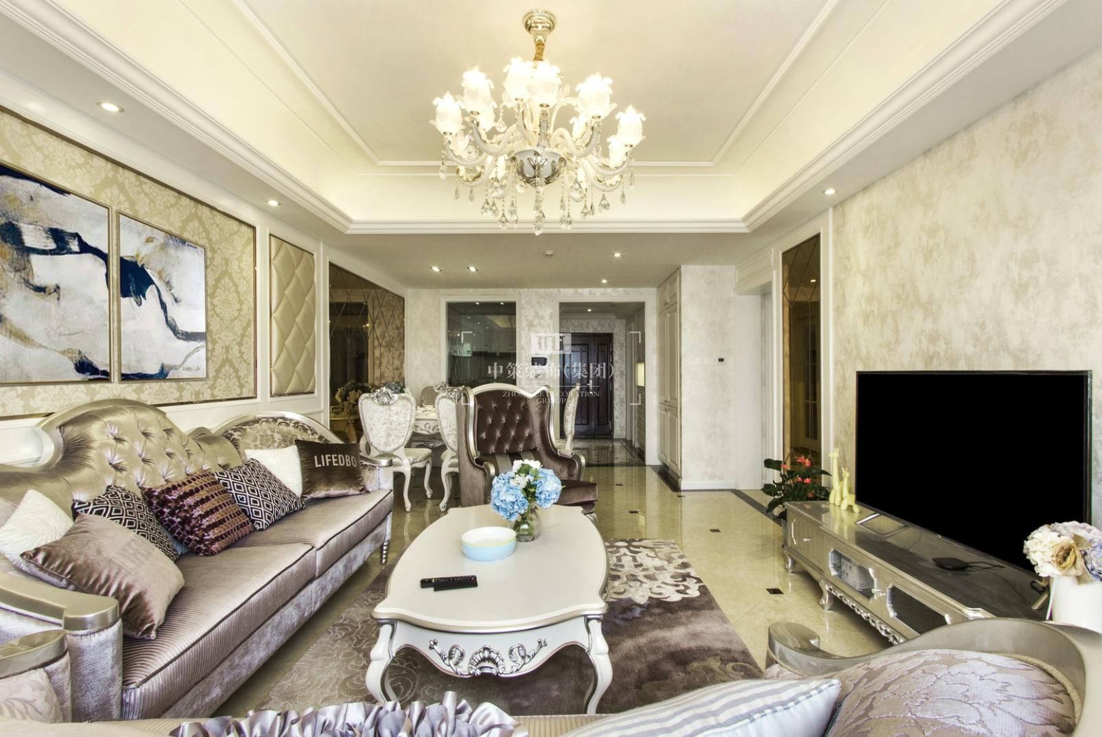 本案设计的主题是新古典,摈弃了巴洛克和洛可可风格所追求的新奇和浮华,建立在一种对古典的新的认识基础上,强调简洁、明晰的线条和优雅、得体有度的装饰。无论是窗帘,沙发还是墙砖总能在不经意间勾起人们的浪漫情怀。