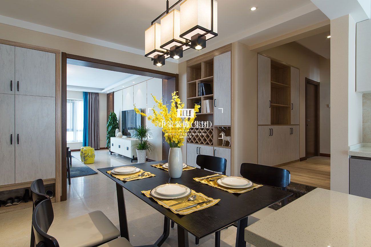 本案为新中式风格,删繁就简,摆脱了传统中式的繁琐和沉闷,源于中式的传统美学,将传统中式与现代装饰完美结合。